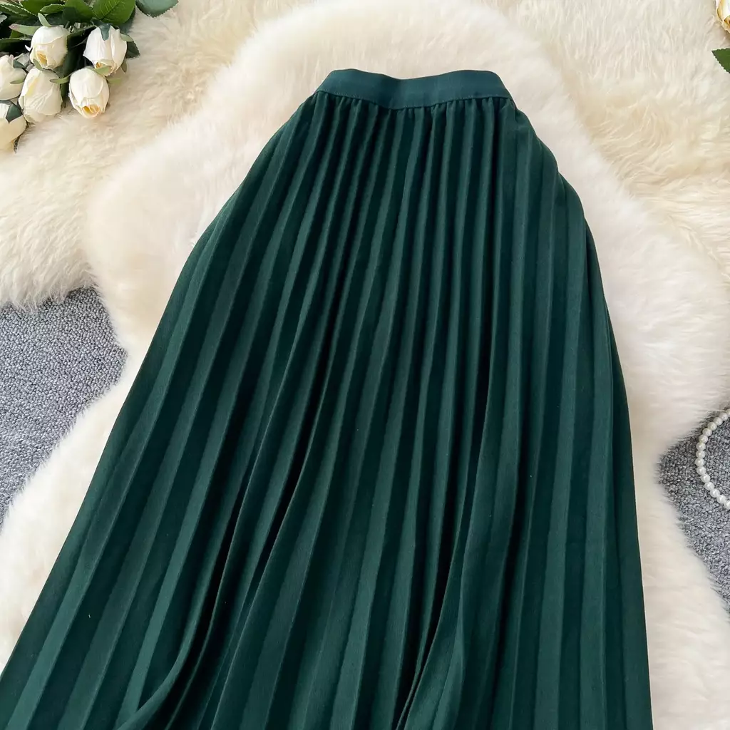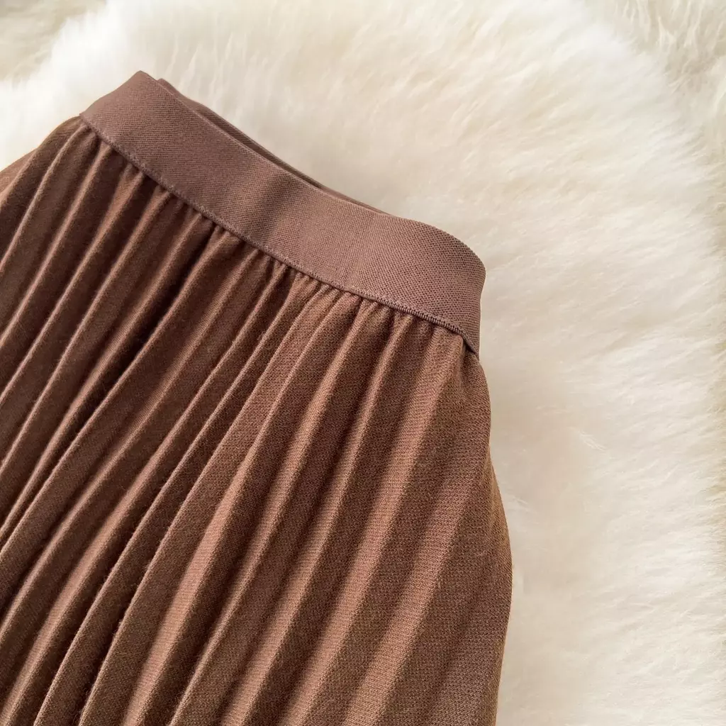 Seu corte em uma linha e o plissado delicado criam um caimento impecável, valorizando as curvas de forma natural e elegante. A cintura alta com elástico proporciona ajuste confortável, modelando a silhueta sem apertar, enquanto o tecido leve oferece movimento fluido e sensação de liberdade.